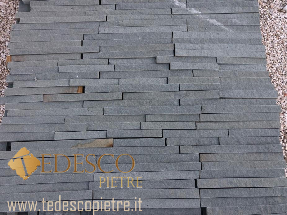 I Listellini di pietra Serena si ottengono tagliando lastroni di scorza gigante di prima scelta. Ideali per rivestimenti interni, sono molto apprezzati in quanto riescono a dare un tocco unico alla tua casa. I Listellini di pietra Serena sono disponibili in due tipologie: naturali (superficie piano cava) o anticati, rispettivamente nelle due foto. Quelli anticati, con la superficie più liscia, sono anche burattati.