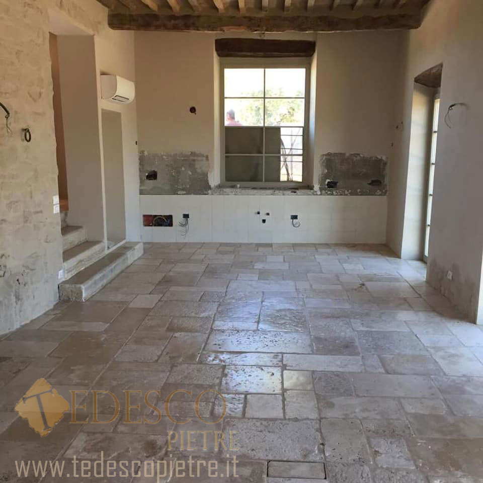 Il pavimento in pietra antica da interni è molto noto per la bellezza dei suoi toni chiari e la sua patina originale. Ha rivestito particolare importanza nei secoli diventando protagonista di ambienti affascinanti di prestigio, nonchè palazzi storici e dimore di pregio. Il suo stile versatile si sposa perfettamente con una varietà di design: dal classico al rustico, dall’antico al moderno.