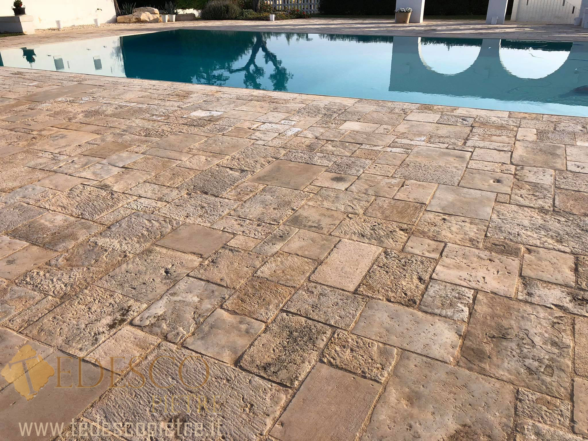 Il Pavimento in pietra antica calcarea è molto noto per la bellezza dei suoi toni chiari e la sua patina originale. Ha rivestito particolare importanza nei secoli diventando protagonista di ambienti affascinanti di prestigio, nonchè palazzi storici e dimore di pregio. Il suo stile versatile si sposa perfettamente con una varietà di design: dal classico al rustico, dall’antico al moderno.