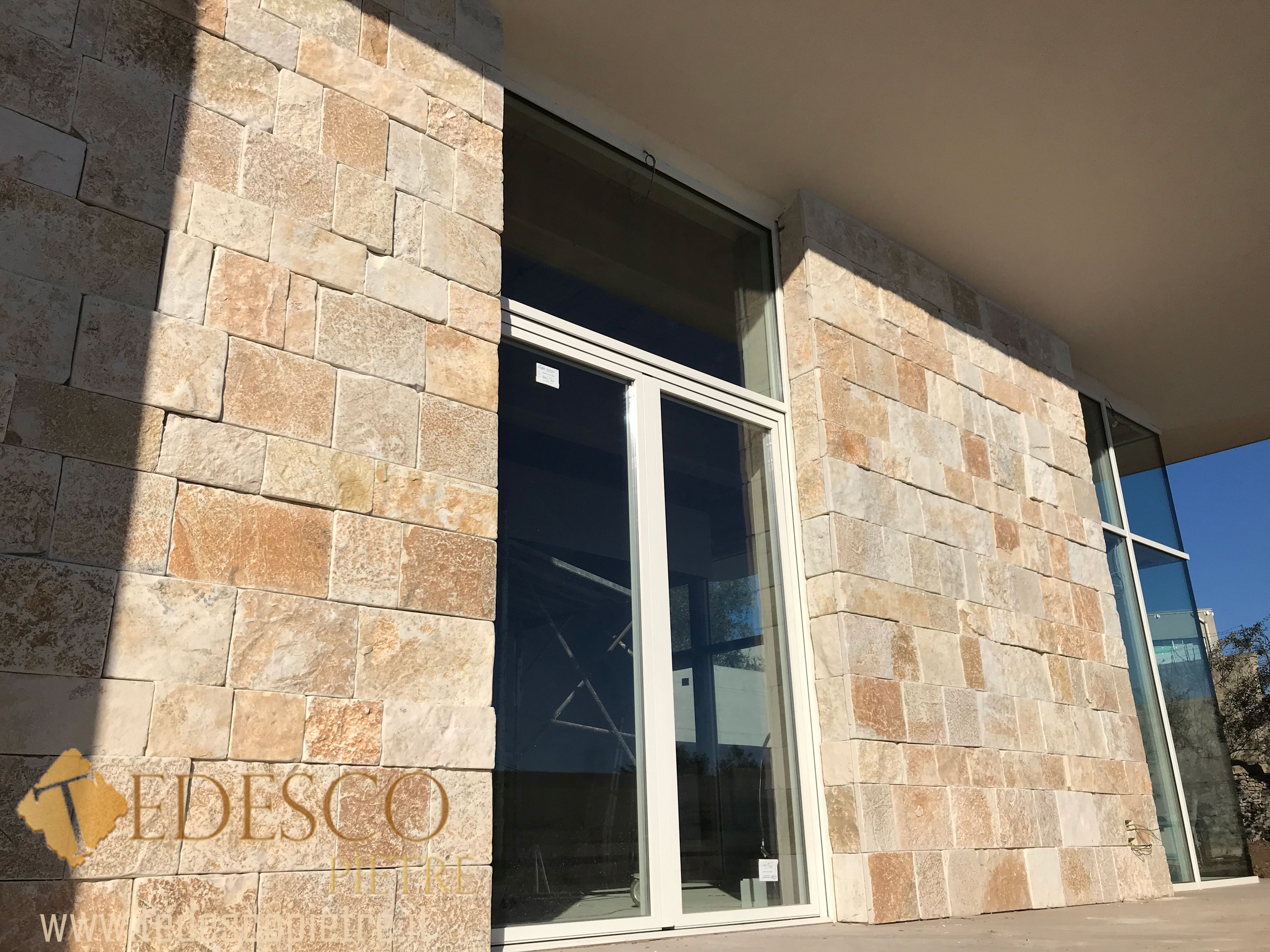 Lo Squadrato del Sol si ottiene squadrando la scorza di pietra. E’ disponibile sia naturale (foto 3) che anticato ed è molto richiesto per pavimentazioni moderne o per rivestire muri, camini, pilastri, facciate. Oggi è molto rinomato perchè attribuisce fascino a qualsiasi ambiente.