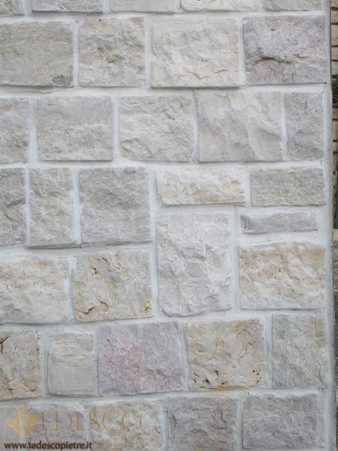 Il Tranciato Anticato Rifilato si ottiene tranciando, rifilando e burattando la pietra di Trani. Possiamo realizzarlo sia tranciato da entrambi i lati, sia retrosegato e quindi più semplice da applicare. E’ molto richiesto per rivestire muri, camini, pilastri, facciate ed inoltre attribuisce fascino a qualsiasi ambiente.
